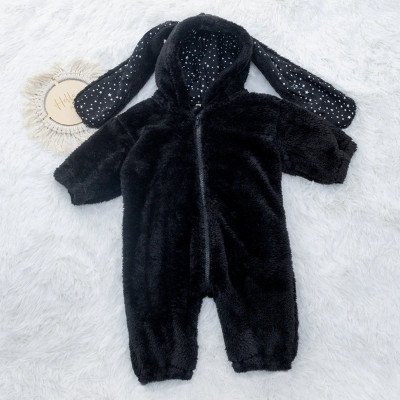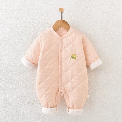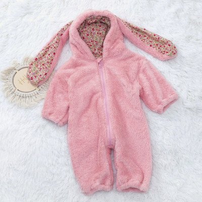 Baby jumpsuit plush thick cartoon rabbit - pink