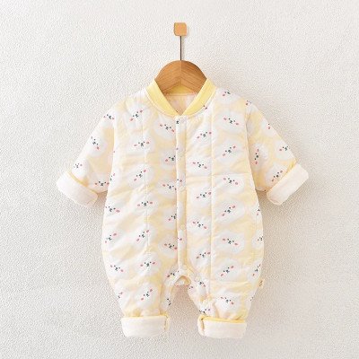 Baby jumpsuit plush thick cartoon rabbit - yellow
