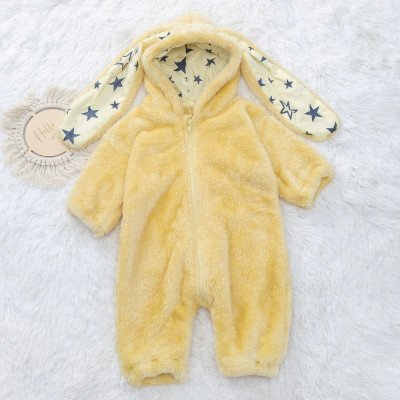 Baby jumpsuit plush thick cartoon rabbit - yellow